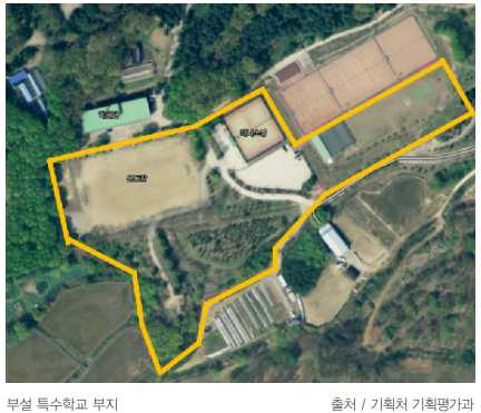 꾸준한 학내 협의를 거쳐 부지와 시설이 확정되었다. 부설 특수학교의 부지는 학군단 뒤편에 있는 ▲연병장 ▲양노장 ▲골프장 ▲인조 테니스장을 포함한다. 연병장, 양노장, 주차장만을 포함했던 기존 계획과는 차이가 있다. 예상 부지가 확대된 배경에 대해 권민재 처장은 “우리학교에 지어질 특수학교는 전국 단위 모집의 기숙사 학교다. 기숙사를 운영해야 하기 때문에 기본적으로 교사동과 생활관동이 있다. 이러한 시설 외에도 체육 특성화 학교이기 때문에 체육관동이 따로 있다. 우리가 생각하고 있는 종목이 10개 정도 되는데 이 10개 종목의 전문 선수를 육성하기 위해서는 상당한 훈련 공간이 필요하다. 특히 체육관동 안에 수영장이 포함될 예정이기도 하기 때문에 규모가 상당히 커질 것으로 예상된다.”라고 설명했다. ‘특수학교 시설·설비기준령’, ‘고등학교 이하 각 급 학교 설립·운영 규정’ 등 관련 법규에 따르면 부설 특수학교 설립에 필요한 최소 대지 면적은 교지 6,700㎡, 체육장 4,500㎡이다. 또한, 생활관 대지 면적 3,826㎡을 더하면 최소 15,026㎡가 필요하다. 부설 특수학교가 들어설 부지의 면적은 26,000㎡로 예정되어 있으며, 이는 최소 기준을 충족한다.
