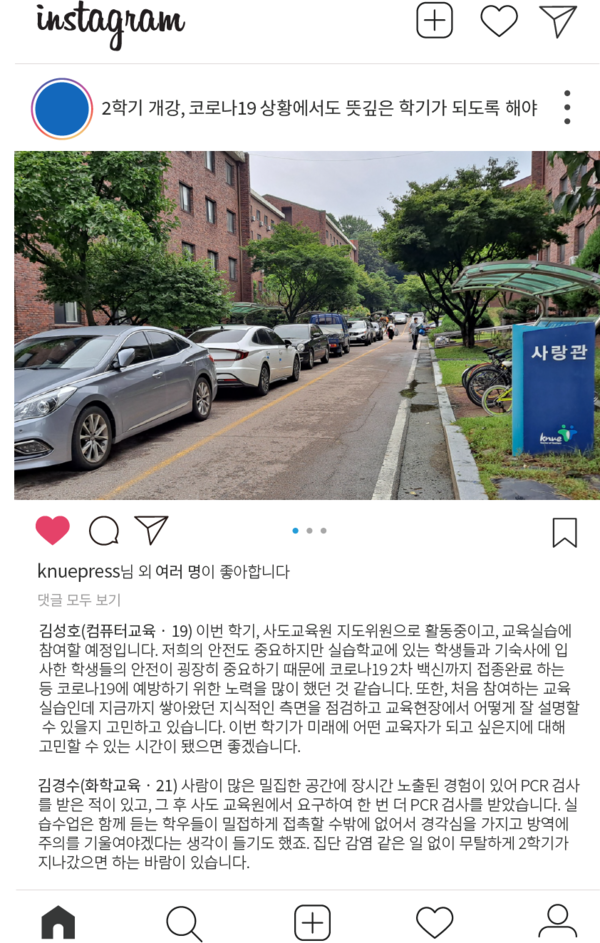 한편, 학생들의 안전을 위해 변경된 생활관 운영방침은 입사 5일 전인, 지난 23일에 공지되어 많은 학생이 혼란을 겪었다. 학생들은 에브리타임 등의 커뮤니티에서 “외박의 제한 정도가 심각하다.” “너무 갑작스러운 공지에 당황했다.” 등의 의견을 내비쳤다. 학생들의 불만에 사도교육원 자치회 기울임(이하 ‘기울임’)은 지난 23일 공식 인스타그램 페이지를 통해 생활관 운영수칙 변경 과정에서 8월 20일 사도교육원의 면담 요청 과정이 일방적이었던 것과 제대로 된 회의 자료를 공유받지 못한 점을 밝혔다. 또한 8월 21일, 자치회 전체 회의를 통해 제안한 ‘완화된 운영수칙’이 반영되지 않은 채 기존 사도교육원의 계획 그대로 생활관 수칙이 발표된 점에 아쉬움을 표했다. 이후 기울임은 25일 한국교원대 학생을 대상으로 설문조사를 시행하였다. 설문조사 결과 출입제한 시간과 관련하여 4단계 수칙에 개선이 필요하다는 학우들의 의견은 전체 참여 인원(403명)의 91.6%에 달했다. 또한 외박 관련 조항에서는 81.8% PCR 검사 관련 조항에서는 68%의 학우들이 문제 삼았다. 이후 사도교육원은 입사생들과 추가적인 소통을 위해 9월 1일부터 8일까지 6일간 ‘사도교육원장과의 소통의 장’을 마련하였다. 다만 회의 대상자 1,184명 중 회의에 참여한 인원은 30명이 채 안 돼서 많은 학생의 의견을 수용하고 공통의 합의점에 이르기엔 무리가 있었다.