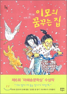 그리고 다음으로 소개할 『이모의 꿈 꾸는 집』은 동화책인데요, 표지가 요즘 말로 분홍분홍 하고 예뻐요. 전체적으로 판타지가 있으면서도 학교와 입시라는 우리의 현실을 담고 있어요. 이 책을 보면 꿈에 대해 자꾸 이야기합니다. 우리 학교 학생들에게 꿈이 뭐냐고 물으면, 여러 가지 꿈들을 이야기하겠지요. 저는 우리 학생들이 선생님이라는 직업을 얻는 것에 만족하지 않고 학생들과 함께 성장하는 과정 중에 있는 선생님이 되었으면 좋겠다고 생각해요. 이 책은 동화라는 특성과 함께 환상적인 장면들을 가지고 꿈을 잘 표현하고 있어요. 그래서 이 책을 읽으면 꿈에 대해 즐겁게 생각해 볼 기회가 되지 않을까 하여 추천해요.