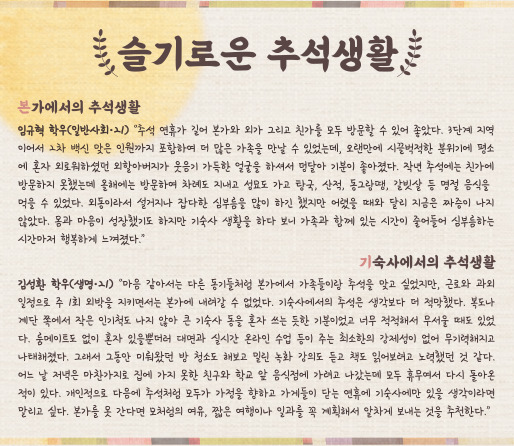 풍성한 보름달 아래, 각자의 연휴를 보낸 학우들의 이야기를 담다