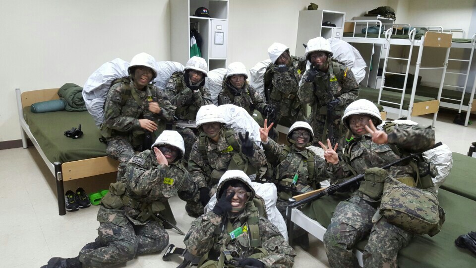 As for off-campus training, we go to Army Cadet Military School every vacation. As the same squad member with other men, women get the same training. Of course, we carry the same 20kg soldier gear as men do.