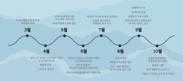 물결은 상단의 그래픽에서 확인할 수 있는 여러 사업 외에도 ▲교육 관련 제휴 사업(희소고시, 임용닷컴 등) ▲교육 이슈 카드 뉴스 ▲이달의 교원대생 PICK ▲규찰대 등의 사업을 꾸준히 진행하며 학우들의 더 편안한 학교생활을 위해 노력했다.