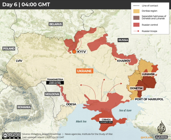Many countries are paying sharp attention to Russia’s invasion of Ukraine. What happens there? The picture above describes the war between Russia and Ukraine. On Sunday, February 20th - two days after the closing ceremony of the Beijing Olympics - Putin approved the independence of the People’s Republic of Donetsk and Lugansk People’s Republic, which are pro-Russian in Ukraine’s eastern Donbas region. Then Russia was guaranteed promises for two republics to cooperate with them.