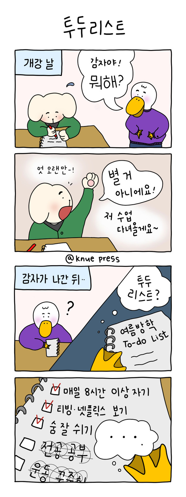 신희수(초등교육·22) 학우 한국교원대신문 knuepress@naver.com 다른기사 보기 저작권자 © 한국교원대신문 무단전재 및 재배포 금지 당신만 안 본 뉴스 [513호/종합탑] 다가오는 제37대 총학생회장단 선거, ‘울림’ 선본 단독 출마 [513호/기획] 코스피 지수 사상 첫 4,000 돌파! 주식 열풍에 대해 알아보다 [513호/보도] 총장 공약 이행 평가 TF, 어떻게 진행되었나? [513호/사무사] 실패를 대하는 태도, 다시 점검해 볼 때 [513호/사설] AI와의 조우, 대학이 해야 할 고민 [513호/기획] 다가서다⑯ - 소멸의 위기에 놓인, 인구감소지역 학생에게 다가서다 [513호/네컷만화] 수많은 공연! [513호/종합탑] 다가오는 제37대 총학생회장단 선거, ‘울림’ 선본 단독 출마 댓글삭제 삭제한 댓글은 다시 복구할 수 없습니다. 그래도 삭제하시겠습니까? 비밀번호 닫기 기사 댓글 0 댓글 접기 댓글입력 권한이 없습니다. 댓글 내용입력 비회원 로그인 이름 비밀번호 댓글 내용입력 댓글쓰기 계정을 선택하시면 로그인·계정인증을 통해 댓글을 남기실 수 있습니다. 회원 로그인 이름 비밀번호 자동등록방지 로그인 옵션 창닫기 주요기사 [513호/사회탑] 2025 APEC 정상회의, 지속가능한 미래 위한 협력 논의 [513호/종합탑] 다가오는 제37대 총학생회장단 선거, ‘울림’ 선본 단독 출마 [513호/교육탑] 공교육 속에 도입된 IB, 아직 제도적 과제 남아있어 [513호/보도탑] 제37대 총학생회장단 선거, 진행 과정의 변화 [512호/보도탑] 복수전공, 10명 중 4.6명꼴로 중도 포기 … 그 원인과 대책은? [512호/사회탑] 기대와 우려 속 78년 만에 폐지된 검찰청