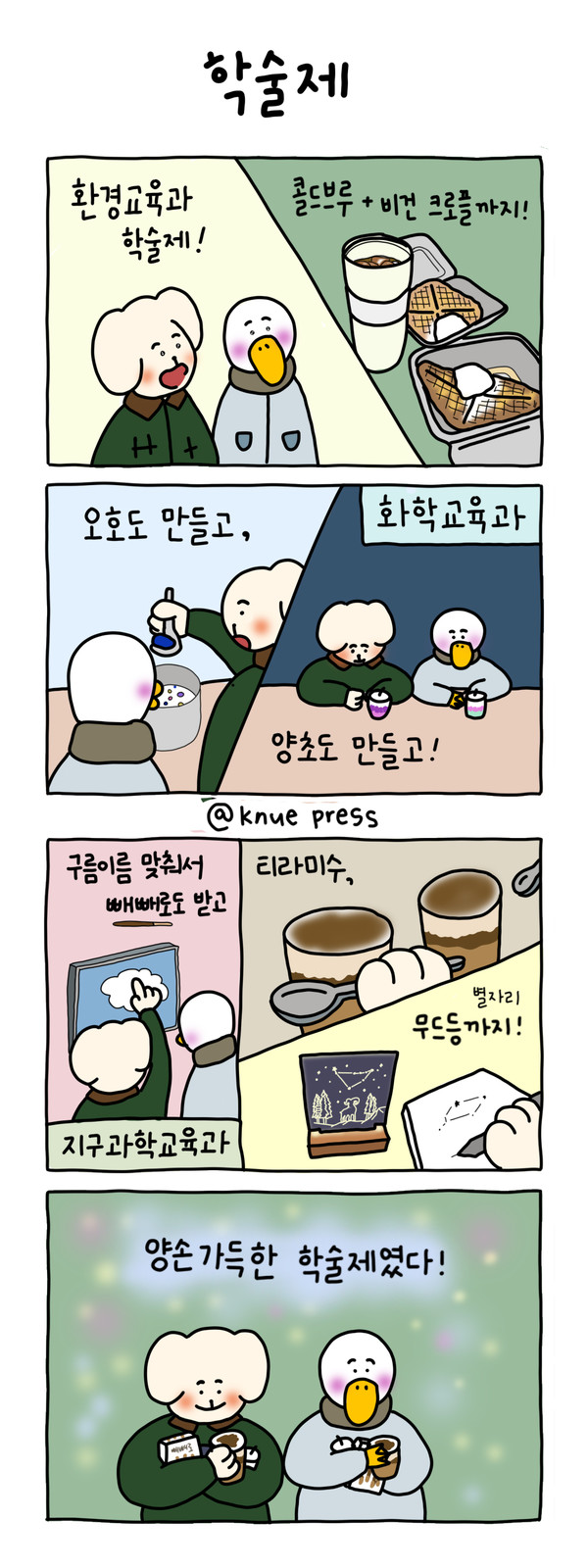 신희수(초등교육·22) 학우 한국교원대신문 knuepress@naver.com 다른기사 보기 저작권자 © 한국교원대신문 무단전재 및 재배포 금지 당신만 안 본 뉴스 [513호/종합탑] 다가오는 제37대 총학생회장단 선거, ‘울림’ 선본 단독 출마 [513호/기획] 코스피 지수 사상 첫 4,000 돌파! 주식 열풍에 대해 알아보다 [513호/보도] 총장 공약 이행 평가 TF, 어떻게 진행되었나? [513호/사무사] 실패를 대하는 태도, 다시 점검해 볼 때 [513호/사설] AI와의 조우, 대학이 해야 할 고민 [513호/기획] 다가서다⑯ - 소멸의 위기에 놓인, 인구감소지역 학생에게 다가서다 [513호/네컷만화] 수많은 공연! [513호/종합탑] 다가오는 제37대 총학생회장단 선거, ‘울림’ 선본 단독 출마 댓글삭제 삭제한 댓글은 다시 복구할 수 없습니다. 그래도 삭제하시겠습니까? 비밀번호 닫기 기사 댓글 0 댓글 접기 댓글입력 권한이 없습니다. 댓글 내용입력 비회원 로그인 이름 비밀번호 댓글 내용입력 댓글쓰기 계정을 선택하시면 로그인·계정인증을 통해 댓글을 남기실 수 있습니다. 회원 로그인 이름 비밀번호 자동등록방지 로그인 옵션 창닫기 주요기사 [513호/사회탑] 2025 APEC 정상회의, 지속가능한 미래 위한 협력 논의 [513호/종합탑] 다가오는 제37대 총학생회장단 선거, ‘울림’ 선본 단독 출마 [513호/교육탑] 공교육 속에 도입된 IB, 아직 제도적 과제 남아있어 [513호/보도탑] 제37대 총학생회장단 선거, 진행 과정의 변화 [512호/보도탑] 복수전공, 10명 중 4.6명꼴로 중도 포기 … 그 원인과 대책은? [512호/사회탑] 기대와 우려 속 78년 만에 폐지된 검찰청