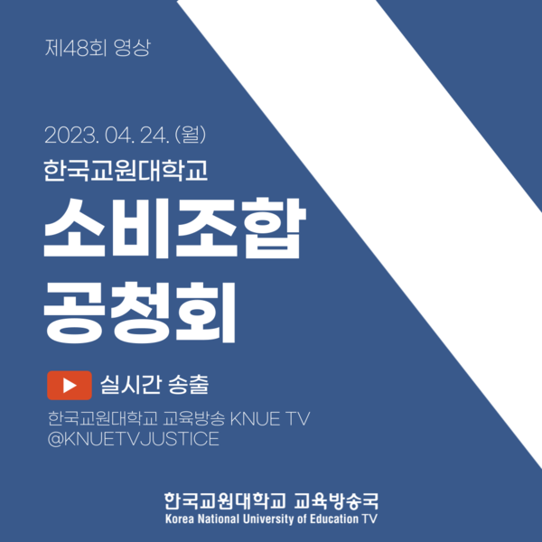 2023년 4월 24일 월요일 16:00-17:30에 예정된 소비조합 공청회를, 한국교원대학교 교육방송국 KNUE TV 유튜브 채널에서 실시간으로 송출합니다.