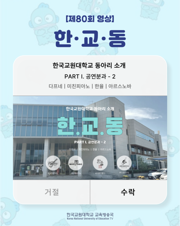 이번 영상은 한국교원대학교 동아리 소개 영상, 한.교.동 PART 1입니다.