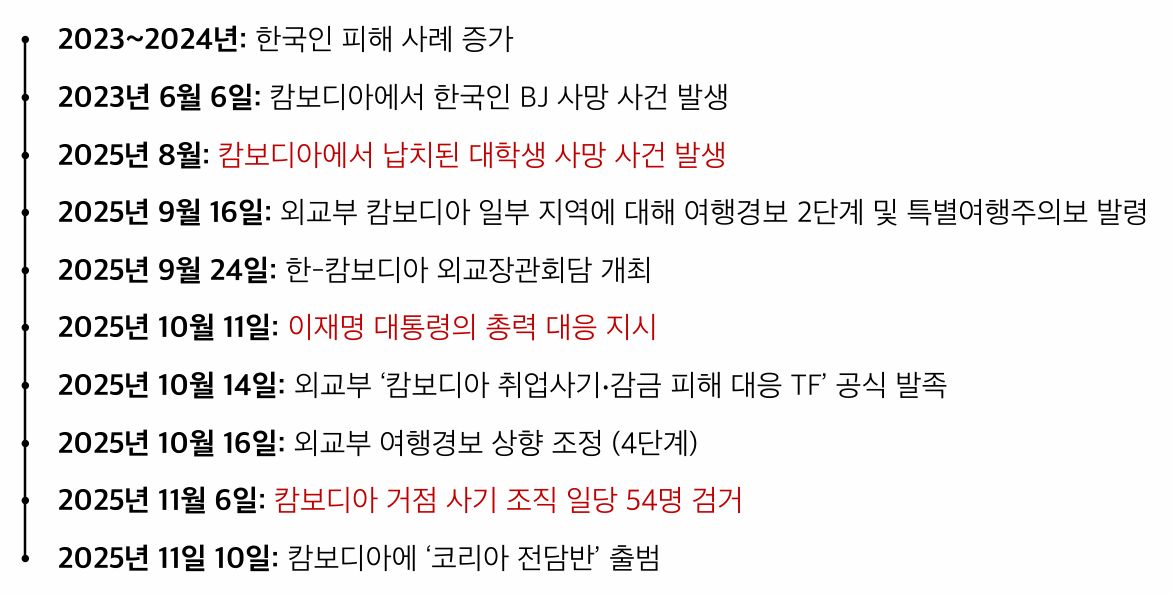 ◇ 정부, 캄보디아 관련 총력 대응 가동 … 초기 대응 미흡 지적도 있어