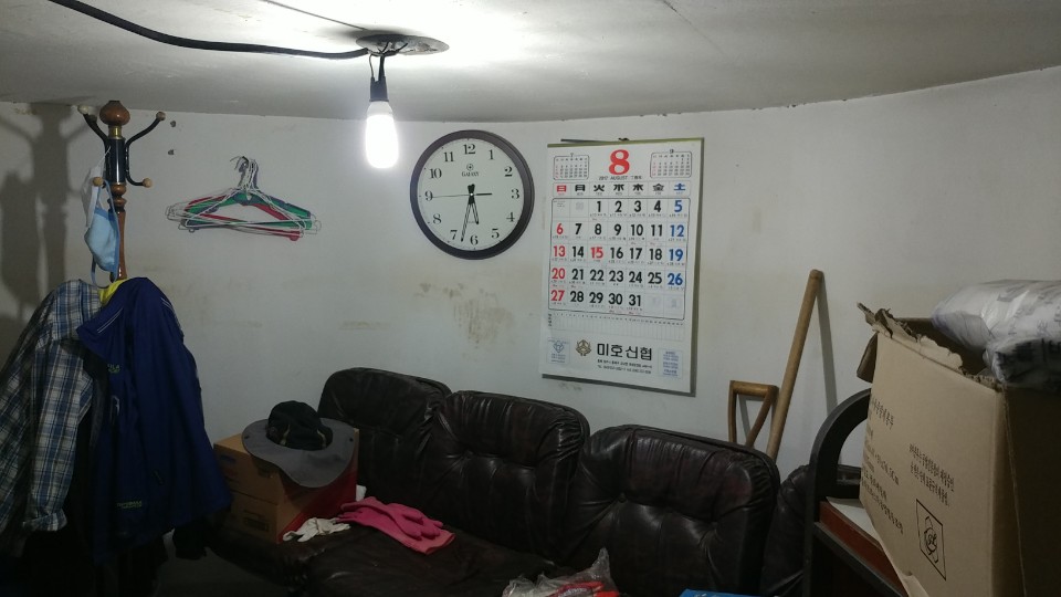 남는 호실을 휴게실로 제공하겠다는 말은 아직 이루어지지 않은 모습이었다. 여전히 계단 밑의 작은 공간이 대부분 청소 노동자의 공간이다.