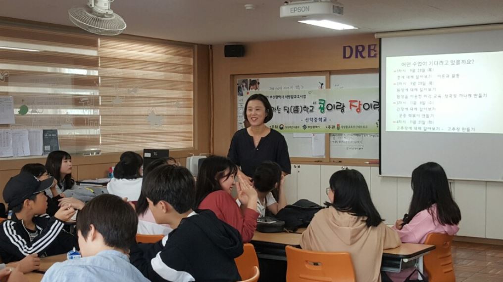 장 학교는 일회성교육에 그치는 것이 아니라 이론과 요리실습을 겸한 총 4차시로 진행하고 있다. 1차시: 콩과 장에 대해 알아보기(콩의 종류와 우수성, 콩 이름, 콩 속담 맞추기 등)