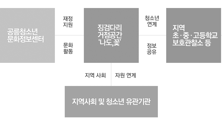 센터와 연계돼있는 징검다리 거점공간은 ▲나도, ‘꽃’ ▲몽담몽담 ▲JU(주) ▲와락 ▲작공 ▲틔움 ▲하품이 있다. 각 거점공간마다 특색 있는 사업을 진행하고 있으며 공통적으로는 상담과 진로 탐색, 배움 활동을 지원하고 있다. 대표적으로 '나도, 꽃' 거점공간에서는 길잡이 교사와 함께하는 1:1 상담을 비롯해 직업체험 및 취업지원을 위해 지역사회와 연계한 인턴십 과정을 제공하고 있으며, 배움 지원을 위해 검정고시 준비 지원과 1:1 멘토링 등 지역 기관과 협력하고 있다. 아직은 이러한 거점공간이 서울시에만 있다는 점과 홍보가 많이 부족하다는 점이 아쉬운 점으로 꼽힌다. 송아현 씨는 “대부분 거점공간이라는 사업이 있는지 모르고 있다. 많은 아이들이 알 수 있도록 홍보에 신경 쓰는게 좋을 것 같다”고 의견을 냈다.