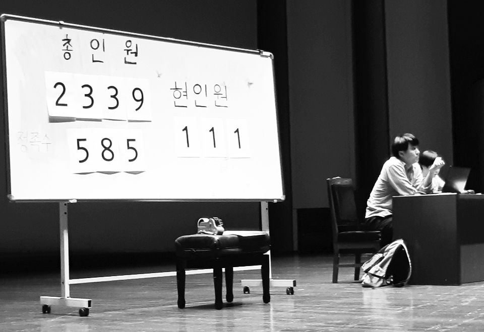 지난 9월 13일 교원문화관에서 제30대 새로 고침 총학생회(이하 총학)의 주최 하에 진행된 2018년 하반기 학생총회가 참석인원이 정족수에 미달하여 무산되었다. 총회 예정 시간인 7시에는 참석인원이 45명이었고, 한 시간이 지나 123명으로 정점을 찍었다. 그 후 참석 인원이 111명으로 점점 줄어들었고 진행되던 간담회도 마무리되어 8시 30분, 신지윤 총학생회장은 학생총회 무산을 선언했다.