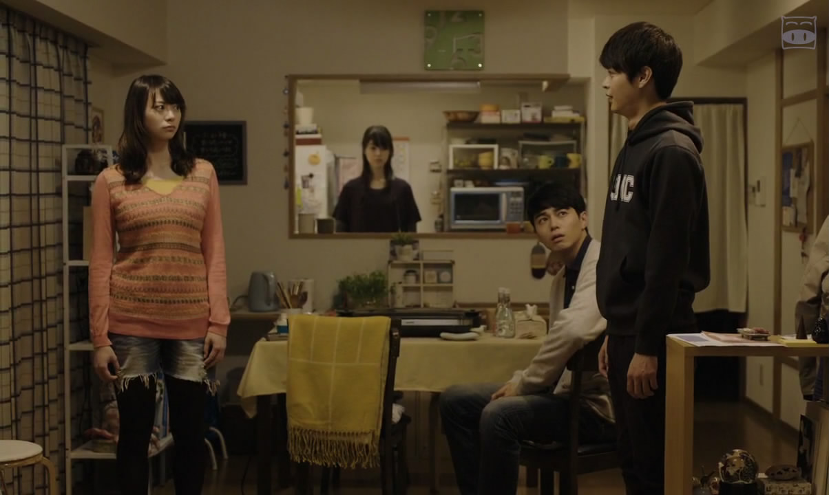 아사코는 오코노미야키를 만들고 있고, 초대된 두 남자인 쿠시하시와 료헤이는 아사코의 절친 마야의 TV 연기를 감상하고 있다. 연기가 끝나자 료헤이는 마야의 연기에 칭송을 덧붙이지만 쿠시하시는 친구한테 칭찬 듣고 싶어서 연기를 하느냐는, 예술적 자아에 도취된 폭언을 날린다. 상황은 어이없을 정도로 냉혹하게 얼어붙고 주선자의 입장인 료헤이는 마야를 위로한답시고 지금 떠나면 저렇게 좋은 사람을 붙잡을 기회는 없을 거라며 쿠시하시를 말린다. 그 한 마디에 쿠시하시는 무릎을 꿇고 잘못 말했다며 마야의 용서를 구한다.