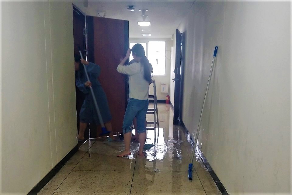 피해 학생은 사고 당시 시급한 대처가 안 됐다고 지적했다. “저희는 직원들의 도움이 필요했던 건데 물이 떨어지는 와중에 도움을 전혀 받지 못했다. 룸메이트끼리만 치웠다. 누가 와서 치워주지 않았다.”라며 당시의 어려움을 드러냈다.