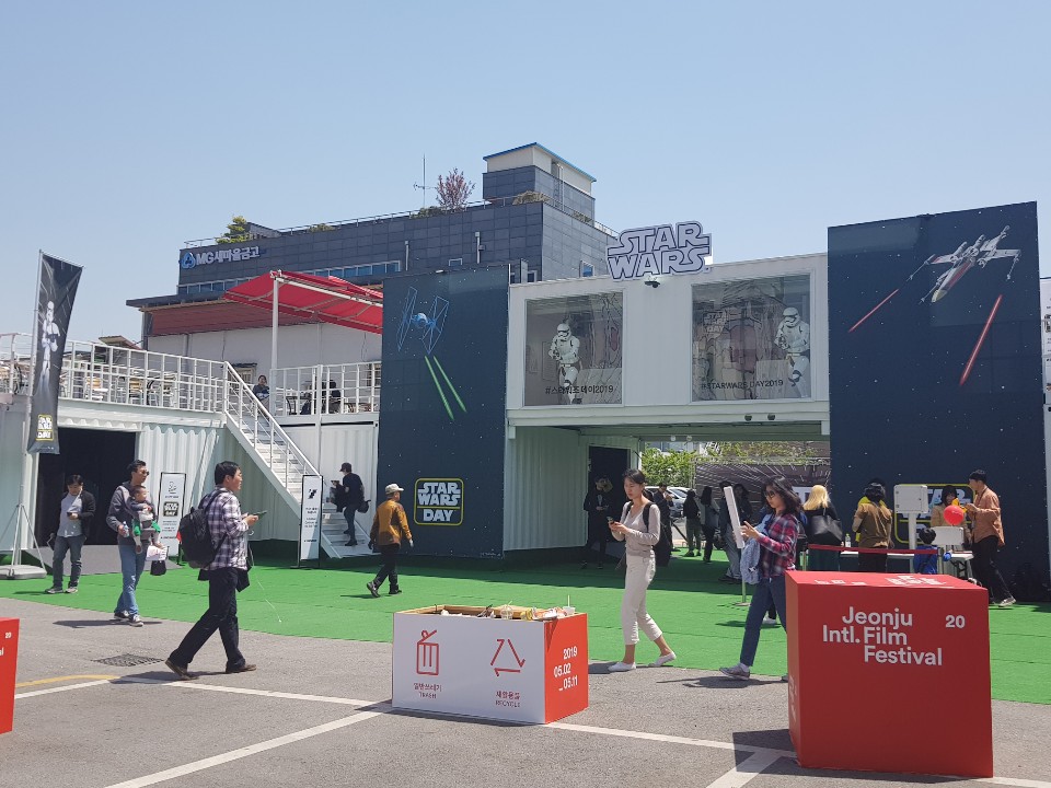 아마 올해 전주국제영화제가 주목한 세 가지 키워드를 뽑으라면 스타워즈, VR 시네마, 익스팬디드 플러스로 좁혀질 것이다. 4월 3일 상영작 발표와 함께 알려진 스타워즈 아카이브 ‘끝나지 않는 연대기’는 작년 디즈니 특별전의 자리를 이어받는 듯한 이미지이다. <스타워즈 에피소드 1 : 보이지 않는 위험>부터 <스타워드 에피소드 8 : 라스트 제다이>까지 여덟 편의 상영작(<로그 원>과 <한 솔로>등 스핀오프 작품은 포함되지 않았다)을 특별전 형식으로 상영하며, 과학자(?)들이 참여하는 스타워즈 토크 및 전시도 준비되었다. 전주 라운지에서 영화제 기간 내내 펼쳐지는 ‘스타워즈 갤러리’ 전시에는 대형 사이즈의 스타워즈 포스터 및 기념품을 파는 마켓과 포토 존이 마련되어 있었는데, 여러모로 영화제 측에서 신경을 쓴 티가 보인다. 다만 관객 측에서는 열광적인 반응과 “굳이 전주에서 해야 할 이유를 모르겠다.”는 반응이 엇갈렸다. VR 시네마는 ‘눈앞에 펼쳐진 미래 영화’라는 주제로 국내‧외의 VR 작품을 상영하는 섹션이다. 전주영화제작소 1층에 마련된 VR 상영관에서 5월 3일부터 5월 10일까지 스피어스 3부작/VR 시네마 1/VR 시네마 2의 섹션별로 상영된다. VR 매체에 대한 심층적인 논의의 장보다는 이를 통한 일반적 경험에 집중하고자 하는 섹션으로 조망된다.