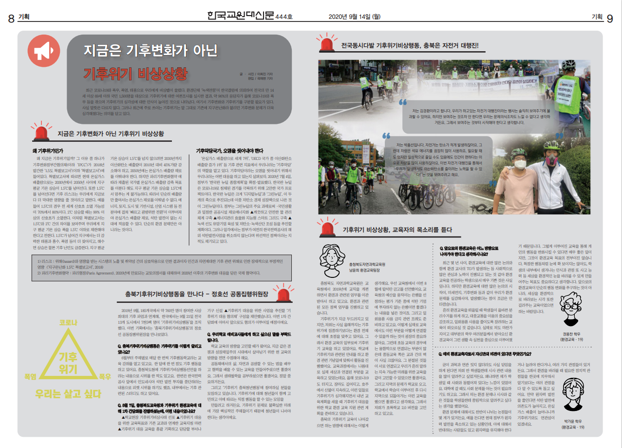 그리고 ‘기후위기 충북청년행동’에 참여하실 분들을 모집하고 있습니다. 기후위기에 대해 청년들이 함께 고민하고 이에 따르는 직접 행동을 할 수 있는 모임을 만들려고 하거든요. 기후위기 문제로 불확실한 미래에 가장 핵심적인 주체들이기 때문에 청년들이 나서야 한다는 생각이에요.