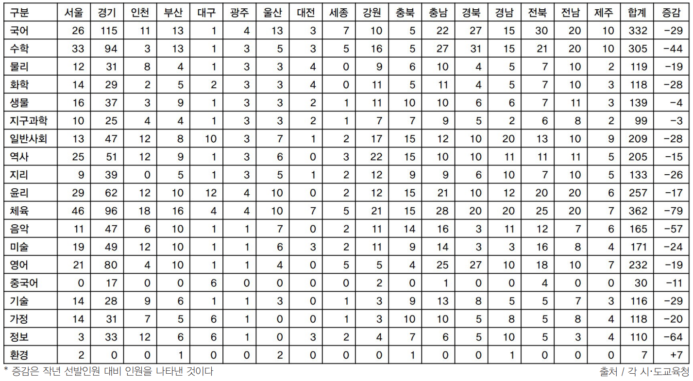 지난 10월 8일 전국 시·도교육청은 2021학년도 중등학교교사 임용시험 시행계획을 공고했다. 중등교원 선발인원은 사전예고의 3,529명보다 904명 늘어난 4,433명이다. 9월에 먼저 공고된 시행계획에 따르면, 유치원교사는 1,232명을 선발하고, 초등 교사는 3,864명을 선발한다.