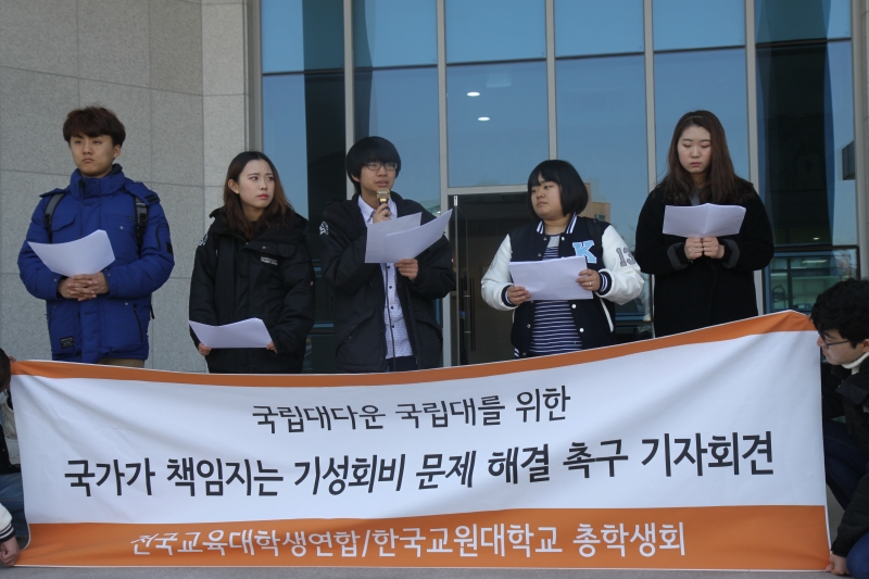 우리학교는 특수목적대학교로 입학비와 수업료가 100% 면제되는 대학이었으나, 국립대 회계법에 대한 논의가 진행되는 과정에서 수업료를 징수할 수 있도록 설치령이 개정됐다. 지난 1월 27일 국무회의에서 의결된 「한국교원대학교 설치령」 개정안에 따르면, ‘수업료를 면제한다’는 조항이 ‘교육부 장관이 정하는 바에 따라 수업료의 전부 또는 일부가 면제된다’로 변경됐다.